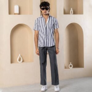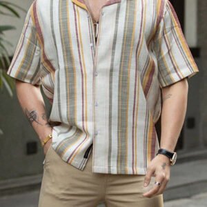 Men’s Casual Button Down Shirts Half Sleeve Cotton Fashion Striped Shirt