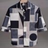 IMPORTED CRUSH FABRIC DOWNSHOULDER 3/4 SLEEV LIGHT BROWN SHIRT