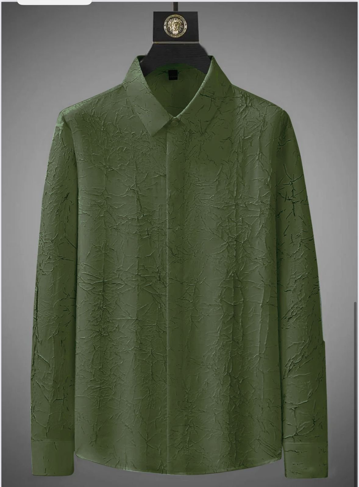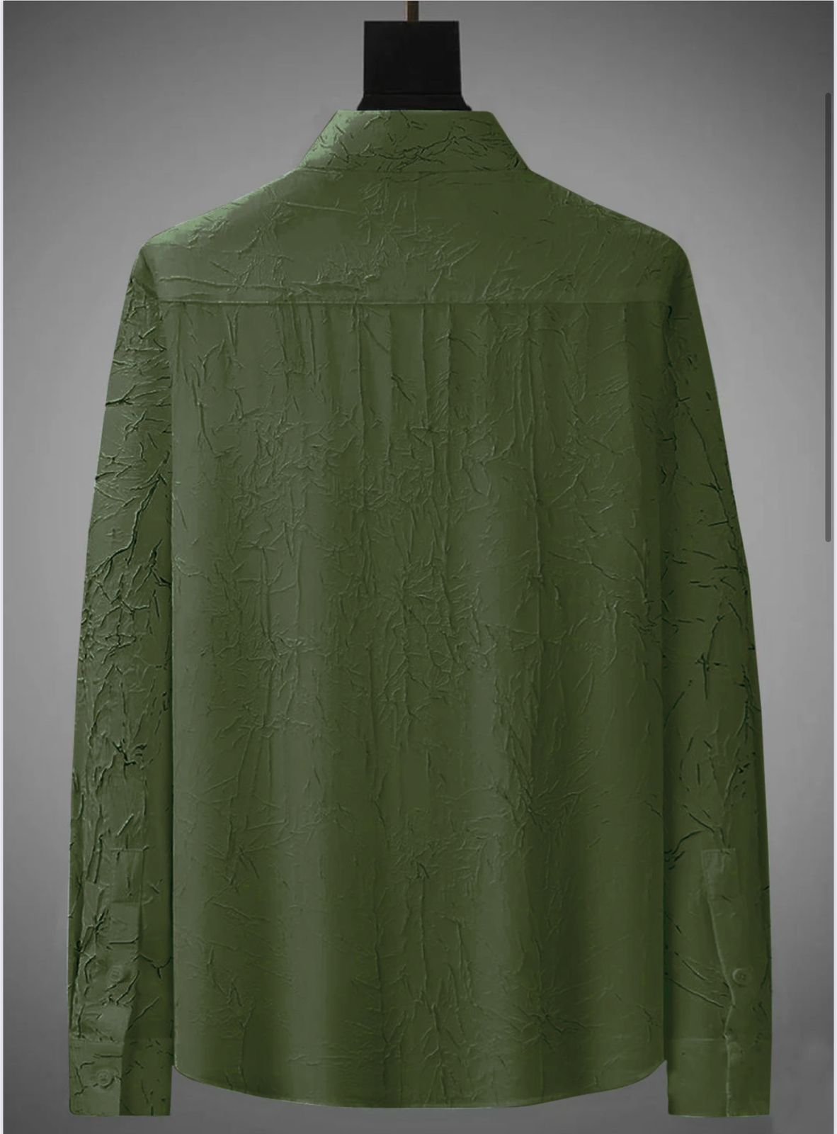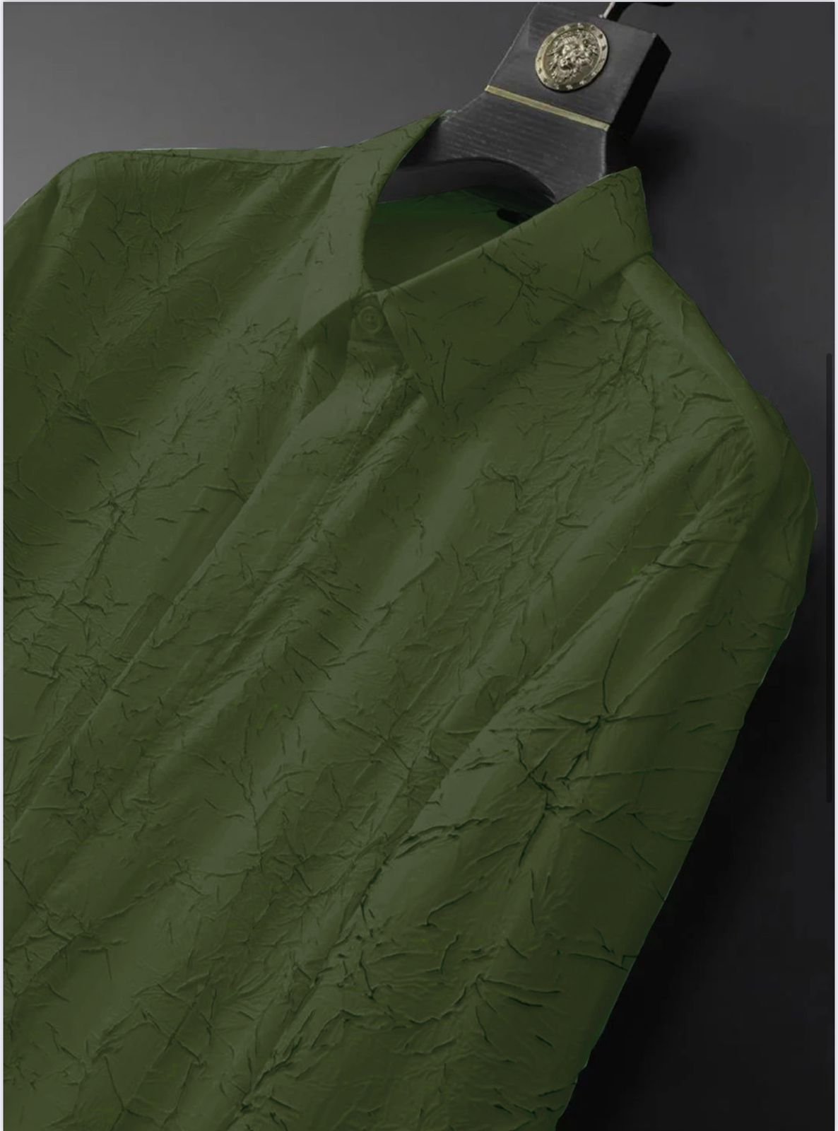 MEN’S EXCLUSIVE GREEN COTTAN FABRIC ITALIAN CRUSH SHIRT
