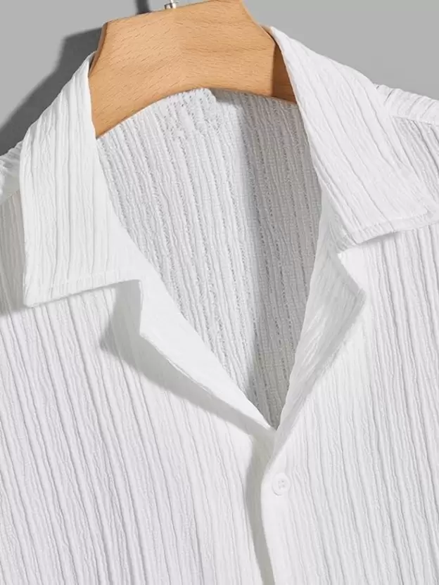 Trending Men’s Classic Opaque Striped Casual White Shirt